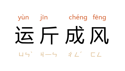 ⒈ 意为挥动斧头时带出一阵风。《庄子·徐无鬼》:“郢人垩漫其鼻端若蝇翼,使匠石(人名)斫之。匠石运斤成风,听而斫之,尽垩而鼻不伤,郢人立不失容。”后喻技艺高超。