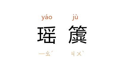 引《楚辞·九歌·东君》:“縆瑟兮交鼓,簫钟兮瑶簴。”洪兴祖 补注:“《尔雅》:‘木谓之簴,县钟磬之木也。’瑶簴,以美玉为饰也。”唐 温庭筠 《元日》诗:“威凤蹌瑶簴,升龙护璧门。”