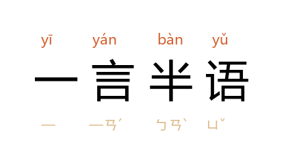 ⒈ 言辞很少。宋·杨万里〈送刘德修殿院直阁将漕潼川〉诗:「一言半语到金石,四海九州成弟兄。」明·无名氏也作「一字半句」、「一言半字」。
