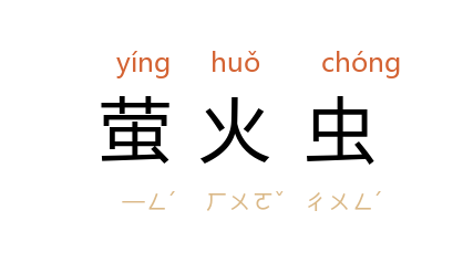 ⒈ 动物名。夏日生于水边,长三分许,能飞,夜间腹部会发出燐光,故称为「萤火虫」。食害虫,有益于农事。