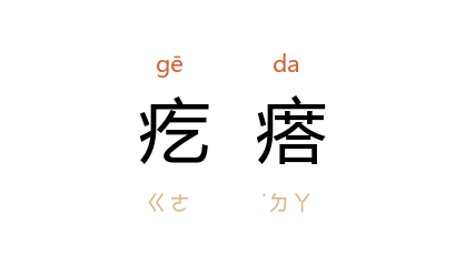引《文明小史·第二七回》:「济川才躺下去,颈脖子上就起了 几个大疙瘩,痒得难熬,一夜到亮,没有好生睡。」