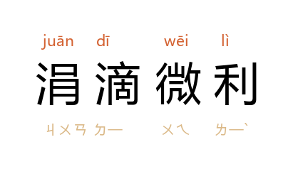 ⒈ 涓:细流;滴:水珠。象小水珠一样微小的利益。