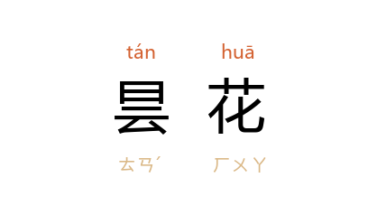 ⒈ 植物名。仙人掌科昙花属,多年生多肉质草本。主枝圆柱形,新枝扁平,绿色,叶状。花大,白色,生在分枝边缘上,多于夜间开放,然不久即凋谢。