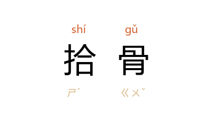 引南朝梁·江淹〈被黜为吴兴令辞笺诣建平王〉:「辍镬敛火,吹魂拾骨。」《隋书·卷三一·地理志下》:「始死,即出葬于中庭,不留室内。敛毕,送至山中,以十三为限。先择吉日,改入小棺,谓之拾骨。」