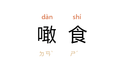 引《后汉书·安帝纪》:“朕以幼冲,奉承鸿业,不能宣流风化,而感逆阴阳,至今百姓飢荒,更相噉食。”《百喻经·杀群牛喻》:“时有一虎,噉食一牛。”唐 谷神子 《博异志·马侍中》:“夜叉奋起,大吼数声,裂人马噉食,血肉殆尽。”明 冯梦龙 《智囊补·闺智·李诞女》:“蛇夜便出,头大如囷,目如二尺镜,闻餈香气,先噉食之。”