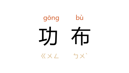 ⒈ 古代丧礼中用以迎神之布。其制,用三尺长的白布悬于竿首,略似旗旛。因丧服斩衰、齐衰用粗麻布,此布则经过加工,比较细白,故称功布。