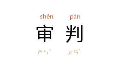 例如:「法官正在审判一桩杀人案件。」、「最后的审判」。