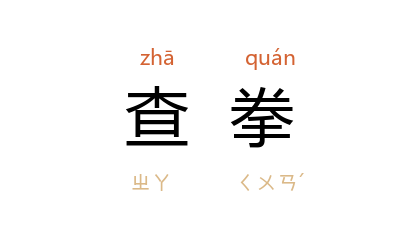 ⒈ 拳术的一种。相传创始于 明 代,是回族人 查尚义 所传留,故称。这种拳术有十路:头路母子拳,二路行手,三路飞脚,四路查拳,五路关东,六路埋伏,七路梅花,八路连环,九路龙摆尾,十路串拳。练法讲究短拳长用,出手较含蓄,步武讲究扣裆,动作紧凑,节奏鲜明。要求“行如风,站如钉”,特别注重精、气、神的结合。