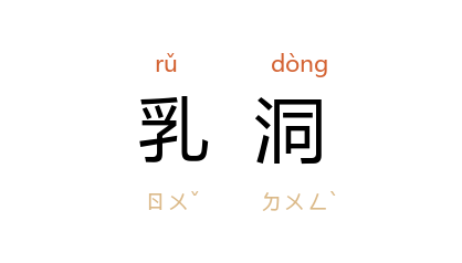 引唐 段成式 《酉阳杂俎·支诺皋中》:“有人游 终南山 一乳洞,洞深数里,乳旋滴沥成飞仙状。”宋 范成大 《兴安乳洞》诗:“向闻乳洞胜,出岭更徘徊。”明 徐弘祖 《徐霞客游记·楚游日记》:“水由下出,西合乳洞北流水,破西北山腹,出 大巖堰。”清 厉鹗 《晚入灵隐寺》诗:“佛坐莓巖徧,人行乳洞分。”