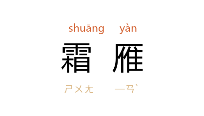 引北齐 刘昼 《新论·託附》:“夫含气庶品,未有不託附物势以成其便者也。故霜雁託於秋风,以成轻举之势。”宋 黄庭坚 《次韵答少章闻雁听鸡》之一:“霜雁叫羣倾半枕,梦回兄弟綵衣行。”清 郑燮 《真州八首属和纷纷皆可喜不辞老丑再迭前韵》之八:“桕叶枫枝静掩门,卧看霜雁碧天痕。”