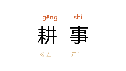 引《周礼·地官·闾师》:“任农,以耕事贡九穀。”《管子·山国轨》:“春十日不害耕事,夏十日不害芸事,秋十日不害敛实,冬二十日不害除田:此之谓时作。”《史记·赵世家》:“肃侯 游 大陵,出於 鹿门,大戊午 扣马曰:‘耕事方急,一日不作,百日不食。’”