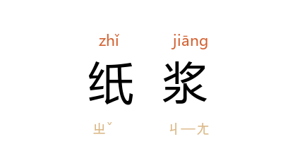 ⒈ 制纸的原料。将木材、破布等物品,经过蒸煮、漂白等手续处理后所得的糊状纤维素,摊平烘干后就成为纸。