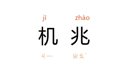 引《三国志·蜀志·先主传》:“睹其机兆,赫然愤发,与车骑将军 董承 同谋诛 操。”唐 李白 《感时留别从兄徐王延年从弟延陵》诗:“大贤达机兆,岂独虑安危。”清 昭槤 《啸亭杂录·诗谶》:“可见落笔之时,机兆已现,不必待蓍龟始先知也。”瞿秋白 《饿乡纪程》十六:“此中却还包孕着勃然兴起,炎然奋焰,生动的机兆。”
