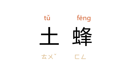 ⒈ 蜂的一种。俗名“马蜂”。即《尔雅·释虫》中之“土蠭”。体圆而长,黑褐色,有细毛,尾有毒针,能螫人。脚短而粗。栖于沙土或朽木中。常捕捉金龟子的幼虫等作为小土蜂的食物。