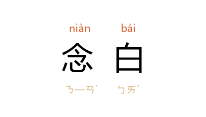 ⒈ 戏曲中人物的独白或对话。有韵白、口白两种,韵白接近官话,有明显的旋律和节奏变化,字音较为拖长;口白则接近各地方日常语言,但又比口语夸张。