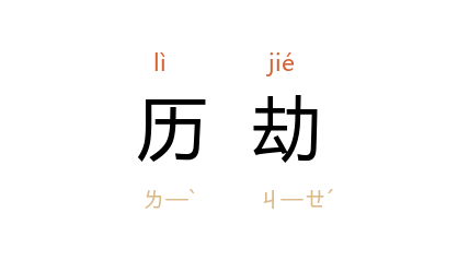 ⒈ 佛教语。谓宇宙在时间上一成一毁叫“劫”。经历宇宙的成毁为“歷劫”。后统谓经历各种灾难。