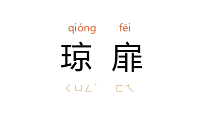 引南朝 齐 谢朓 《思归赋》:“朝霞之采可嚥,琼扉之饰方宣。”唐 王勃 《梓州郪县灵瑞寺浮图碑》:“琼扉暮敞,挂明月於金铺;绣桷晨开,落繁星於玉砌。”宋 周邦彦 《汴都赋》:“琼扉涂丹,金铺鏤兽。”