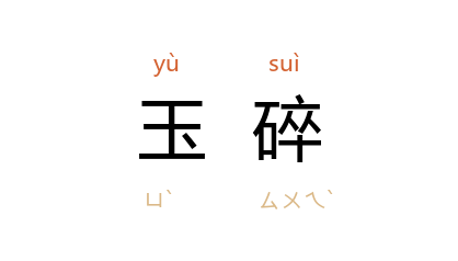⒊ 美玉碎裂。谓为理想、正义而死。