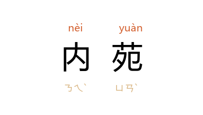 ⒈ 皇宫内的庭园。亦指皇宫之内。