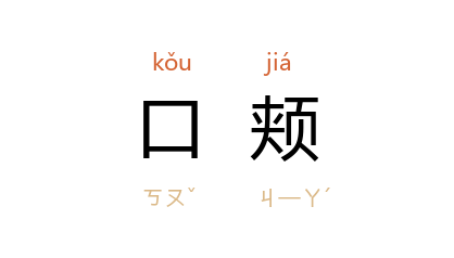 引《艺文类聚》卷十九引 晋 孙楚 《笑赋》:“徐疾任其口颊,员合得乎机要。”宋 苏轼 《戏用晁补之韵》:“知君忍飢空诵诗,口颊澜翻如布穀。”