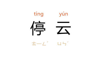 ⒉ 停止不动的云。因晋代陶渊明〈停云〉诗中,以停云比喻思念亲友的心情,故后世多作为思念亲友的用语。