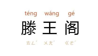 ⒈ 在江西省南昌市沿江路赣江边。建于公元653-659年。因是洪州都督滕王李元婴(唐太宗弟)所建而得名。以唐代著名诗人王勃写《滕王阁序》而闻名于世。与湖南岳阳楼、湖北黄鹤楼并称江南三大名楼。1926年被北洋军阀邓如琢烧毁,1985-1989年重建。占地43万平方米,高9层,575米。飞檐翘角,气势雄伟。为南昌游览胜地。