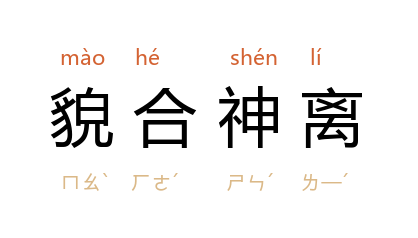 ⒈ 表面上彼此很切合,实际上心思不一样。也作「貌合情离」、「貌合心离」、「貌合行离」。