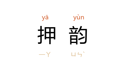 ⒈ 诗词歌赋中,某些句子的末字使用韵母相同或相近的字,使音调和谐优美,称为「押韵」。