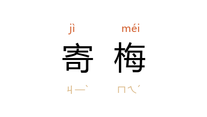 ⒈ 赠送梅花。《太平御览》卷九七〇引南朝宋盛弘之《荆州记》:“陆凯与范晔相善,自江南寄梅花一枝诣长安与晔,并赠花诗:'折花逢驿使,寄与陇头人。江南无所有,聊赠一枝春。'”后以“寄梅”借指对亲朋的思念和问候。