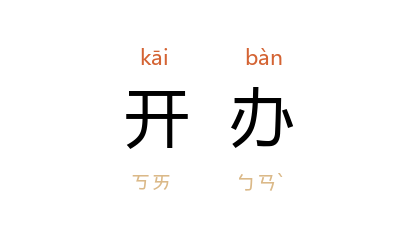 引丁玲 《在医院中》:“为了党的需要,她必须脱离学习到离 延安 四十里地的一个刚开办的医院去工作。”魏巍 《壮行集·幸福的花为勇士而开(四)》:“我们开办了许多学校,但仍然有许多人不能升进中学或大学。”