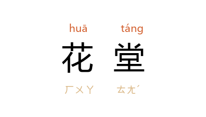 引北周 庾信 《秦州天水郡麦积崖佛龛铭》:“彫轮月殿,刻镜花堂。”唐 白居易 《紫薇花》诗:“何似 苏州 安置处,花堂栏下月明中。”