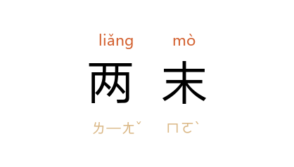 引晋 崔豹 《古今注·舆服》:“汉朝 执金吾,金吾亦棒也。以铜为之,黄金涂两末。”宋 沉括 《梦溪笔谈·象数二》:“其跡如循柳叶,两末鋭,中间往还之道,相去甚远。”