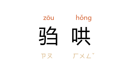 引《新唐书·崔琳传》:“其羣从数十人,自 兴寧里 謁 大明宫,冠盖騶哄相望。”《新唐书·郑畋传》:“故时,宰相騶哄联数坊,呵止行人。”清 唐孙华 《寿王戒庵九十》诗之一:“雅志避騶哄,插篱隔门庭。”