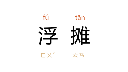 引清 倦圃野老 《庚癸纪略》:“二十九日,卖买惟浮摊,货物腾贵。”《人民日报》1958.3.2:“因为修筑 东安门 里外大街马路,就把街南北的浮摊全移在 金鱼胡同 西口街南。”