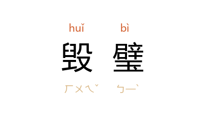 后以“毁璧”为鄙弃财宝之典。 唐 骆宾王 《夏日游德州赠高四》诗:“谈玄明毁璧,拾紫陋籯金。”