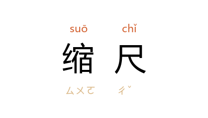 ⒈ 比例尺。因可比照原形缩小若干比例,故称为「缩尺」。