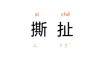 引茅盾 《水藻行》三:“叉港里泥草像一片生成似的,抵抗着人力的撕扯。”杜鹏程 《在和平的日子里》第三章:“敌人把她严刑拷打之后,丢到一个干涸的池塘里,让三只猛虎似的‘洋狗’去撕扯她。”