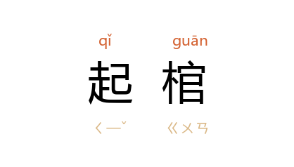 引《黑籍冤魂》第十二回:“出殯之日,各局俱齐,预备起棺行丧。”陈世旭 《小镇上的将军》:“在起棺的那一刻,他们宰了雄鸡祭杠。”