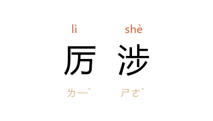 引《魏书·成淹传》:“于时宫殿初构,经始务广,兵民运材,日有万计, 伊、洛 流澌,苦於厉涉。”清 俞樾 《春在堂随笔》卷六:“盖自 龙井 至 理安,可由 翁安山,不必取道 九溪十八涧。溪涧曲折,厉涉为难,非所便也。”