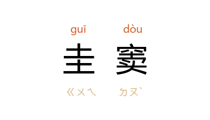 ⒉ 形容卑微穷困的人家。《三国志·卷八·魏书·公孙度传》「诱呼鲜卑,侵扰北方。」句下裴松之注引《魏书》曰:「臣等生于荒裔之土,出于圭窦之中。」