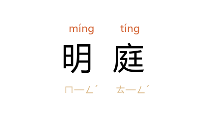 引唐 杜牧 《雪中书怀》诗:“明庭开广敞,才儁受羈维。”宋 文天祥 《正气歌》:“皇路当清夷,含和吐明庭。”清 李渔 《玉搔头·得实》:“娘行休洒伤时泪,真共假,向明庭质对。”