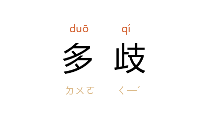引唐 许浑 《晓发鄞江北渡寄崔韩二先辈》诗:“南北信多岐,生涯半别离。”唐 牛僧孺 《玄怪录·郭代公》:“泣拜以从公,公多歧援喻,止之不获,遂纳为侧室。”