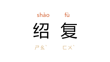 引《书·盘庚上》:“绍復先王之大业,底绥四方。”南朝 梁 刘勰 《文心雕龙·乐府》:“秦 燔《乐经》, 汉 初绍復。”唐 元稹 《献事表》:“况陛下以上圣之资,绍復前统,即位之日,天下惟新。”
