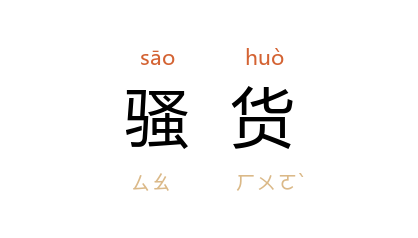 引周而复 《上海的早晨》第三部二三:“京剧,真没意思!还不是借机会和那骚货胡缠。”端木蕻良 《义卖》:“身畔带个女人,一定是送笔给他的那骚货。”