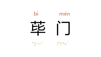 引《孔丛子·抗志》:“亟临蓽门,其荣多矣。”唐 王维 《山居即事》诗:“鹤巢松树遍,人访蓽门稀。”清 钱谦益 《投老》诗:“投老经年掩蓽门,清斋佛火自晨昏。”