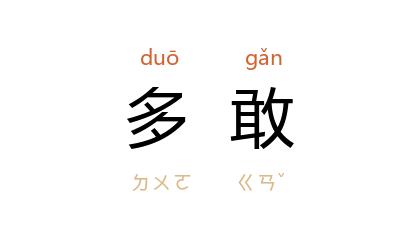 引元 兰楚芳 《四块玉·风情》曲:“不见后又嗔,得见后又忖,多敢死后肯。”元 马致远 《碧桃花》第二折:“他那里无语无言,只是长吁气。多敢怕等閒间泄漏了天机。”《水浒传》第五二回:“足下放心,此时多敢 宋公明 已都取寳眷在山上了。”明 高明 《琵琶记·琴诉荷池》:“相公,我看你多敢是想着谁。”