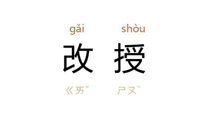 引晋 陆机 《赠顾交阯公真》诗:“发迹翼藩后,改授抚南裔。”南朝 齐 王俭 《褚渊碑文》:“徵为吏部尚书领卫尉,固让不拜,改授尚书右僕射。”