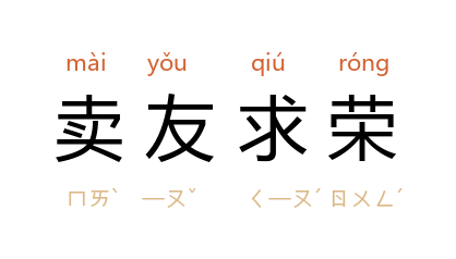 引柳亚子 《咏史》之二:“卖友求荣事可羞,靦颜枉自附清流。”《人民日报》1984.4.18:“我不能见利忘义,卖友求荣,变成利禄小人!”