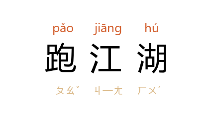 ⒈ 来往各地以卖艺、卜算、相命等为职业,谋求生活,称为「跑江湖」。