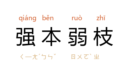 ⒈ 比喻强化根本力量,削弱分歧的势力。参见「彊干弱枝」条。